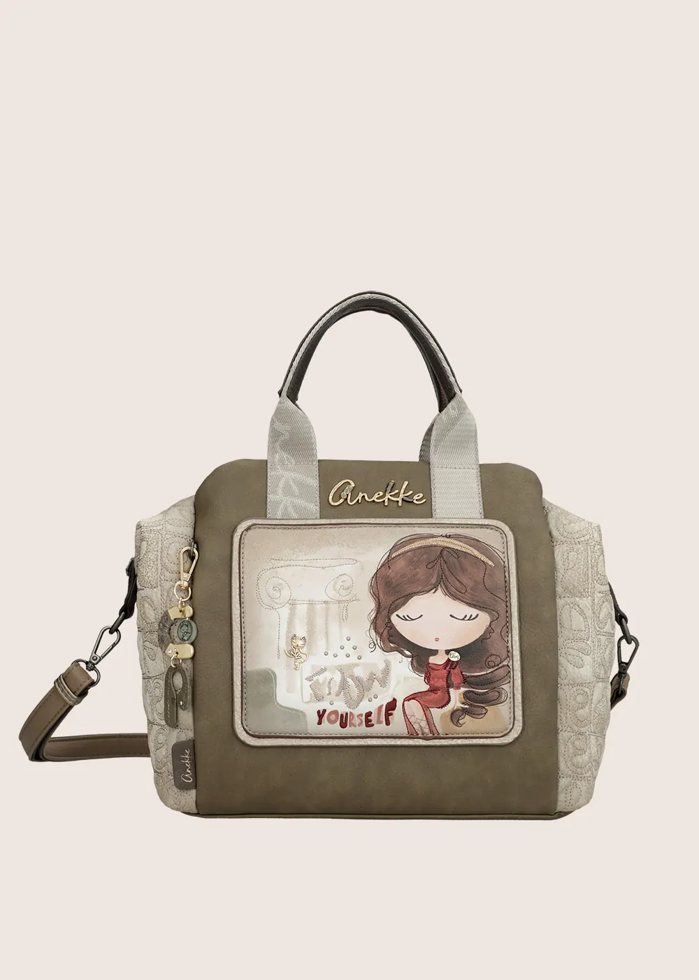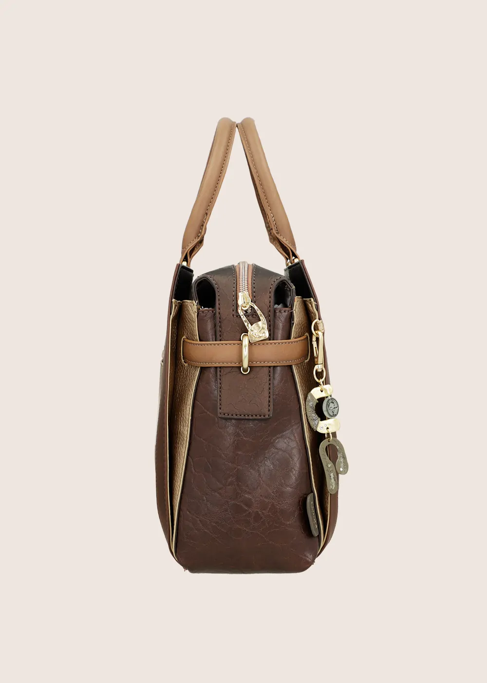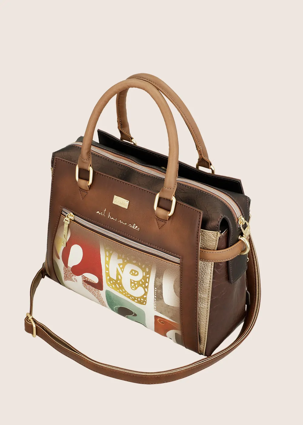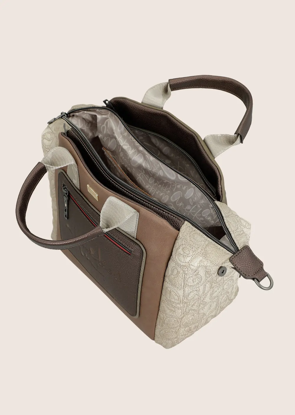 Μια κομψή και ευρύχωρη τσάντα με κλείσιμο φερμουάρ για μεγαλύτερη ασφάλεια. Διαθέτει πρακτικές εσωτερικές και εξωτερικές θήκες για σωστή οργάνωση των προσωπικών σας αντικειμένων, ενώ οι διπλές χειρολαβές και ο ιμάντας ώμου προσφέρουν άνεση και ευελιξία στη μεταφορά. Κατασκευασμένη από ανθεκτική πολυουρεθάνη με εσωτερική επένδυση από πολυεστέρα, αποτελεί ιδανική επιλογή για καθημερινή χρήση.
